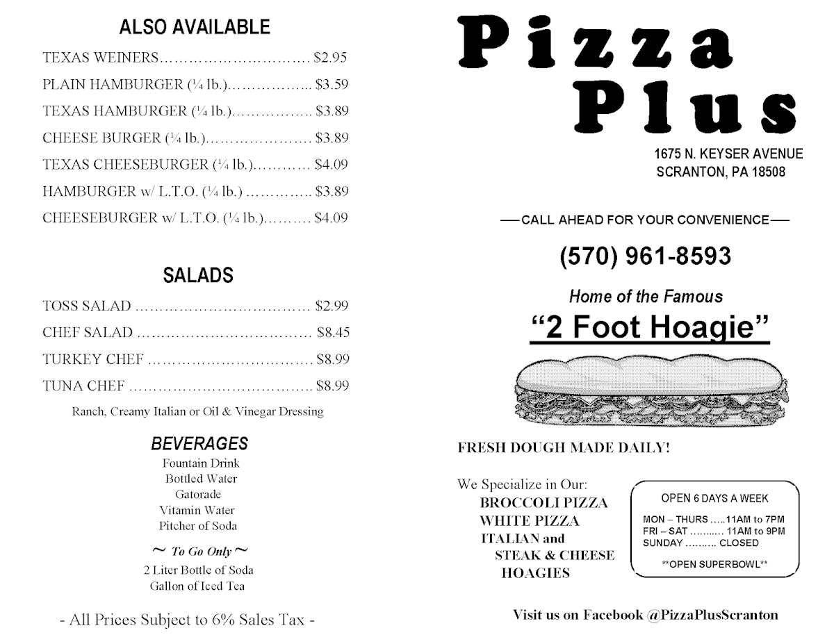 Pizza Plus - Scranton Menu
